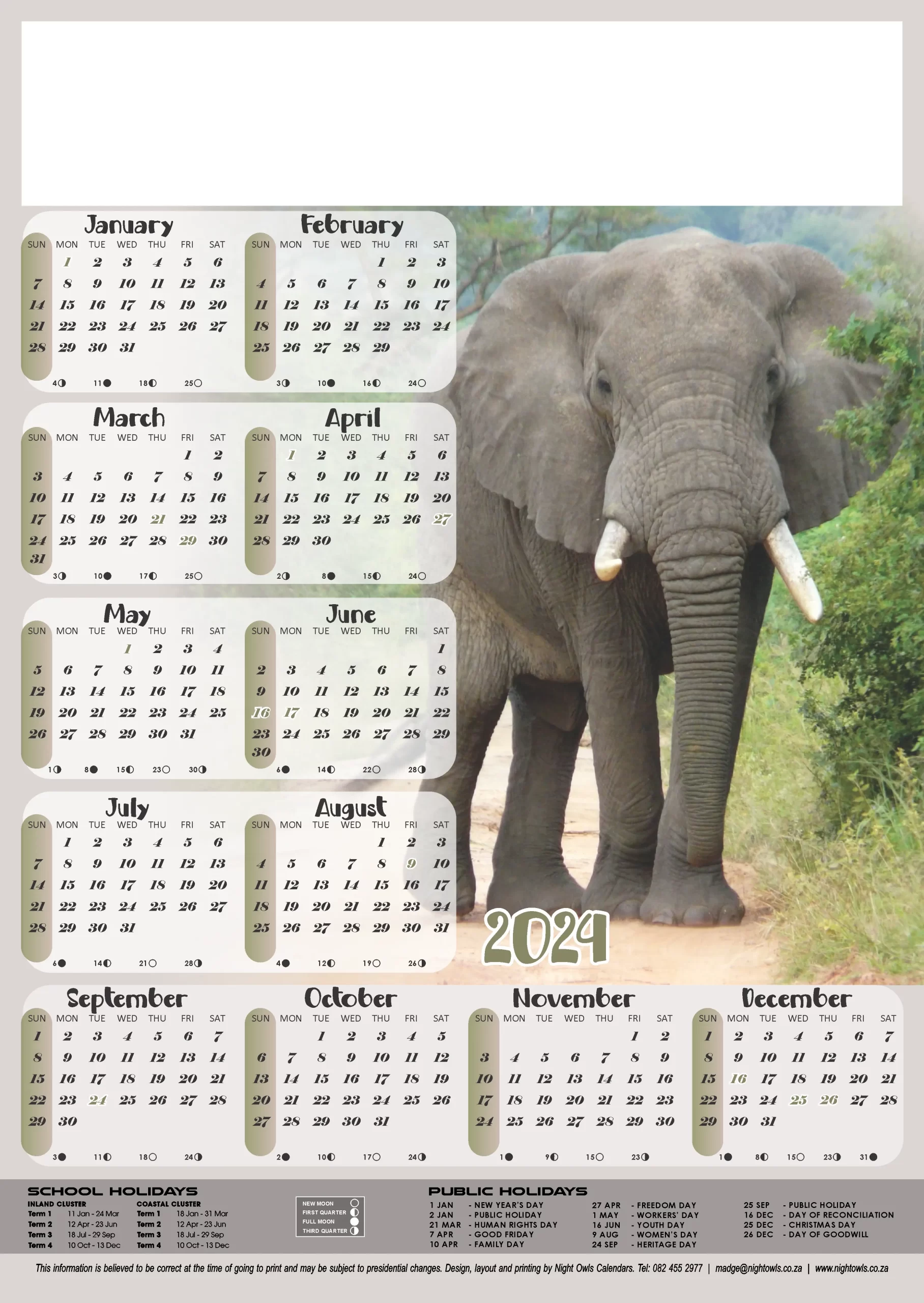 A3 Calendar 2024 Elephant